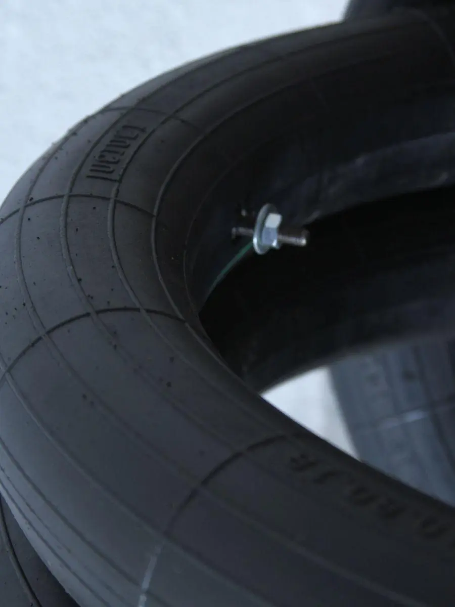 Em caso de furo (difícil devido à espessura acima mencionada), a câmara ainda permite circular vários km (efeito plano) pois mesmo que completamente esvaziada, mantém a sua forma estrutural como se vê nas fotos.