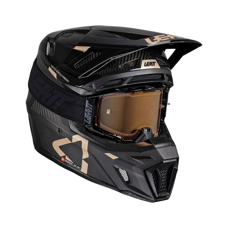 Um kit de capacete e óculos, o capacete Moto 9.5 é feito de fibra de carbono ultraleve e uma camada interna de EPS de 4 densidades que oferece máxima segurança graças à tecnologia 360 Turbine. Essa tecnologia permite maior absorção da força produzida em caso de impacto. Com o LEATT 9.5 V26 CARBON (ÓCULOS 6.5 IRIZ INCLUÍDO), a segurança e estilo são garantidos no uso deste equipamento.