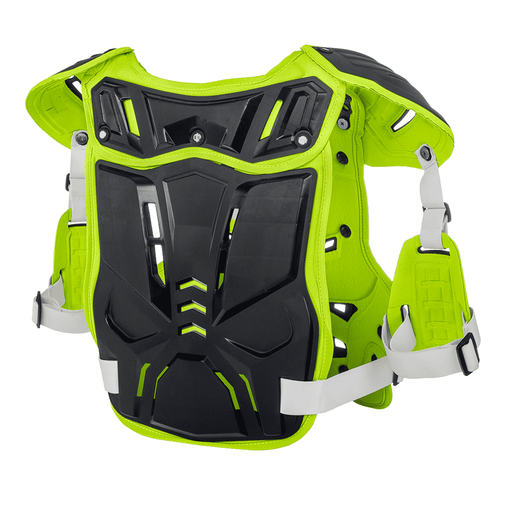 - Protetores flexíveis: A proteção do peito é equipada com as almofadas do braço superior ajustável, que pode remover a qualquer momento.