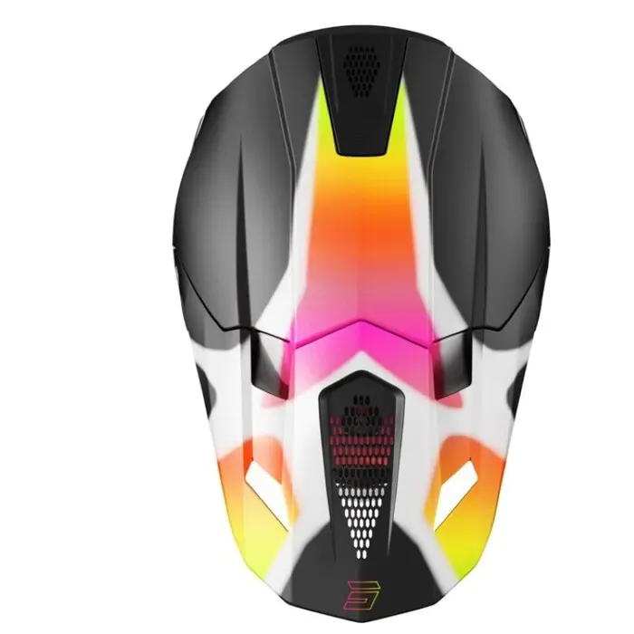 Sistema de ventilação composto por 10 entradas de ar localizadas na proteção do queixo e na parte superior do casco e 9 saídas traseiras que garantem uma ótima circulação de ar.